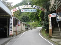 ロープウェイ駅に到着し、京屋旅館の駐車場(500円)に車を置く。平日のせいか、駐車はほとんどない。シャッターが降りたままの土産物屋の並びを通ってロープウェイ駅に行き、往復乗車券(1,900円)を購入して、9:00発のロープウェイに乗車する。このロープウェイは全国でも有数の急勾配のものだそうで、確かに上の駅を見上げると首が痛くなるような高さだ。