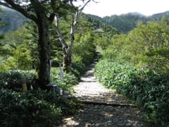 9月の平日とあって登る人は少ないが、それでも頂上からぱらぱらと降りて来るハイカーさんと行き会う。大剣神社への道を右に分け、鹿除けのネットをテキサスゲートで越える。刀掛の松で道は三方に分かれる。右は大剣神社へ。左はキレンゲショウマの群生地を経由する道だが、今は花の時期ではないので、頂上への最短コースとなる真ん中の道を通る。