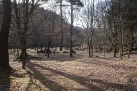 橋を渡った先は鬼怒川右岸の段丘面上の平地で、あじさい園と称する園地となっている。疎な樹林に芝地が広がり、大岩やベンチが点在して、なかなか雰囲気が良い。