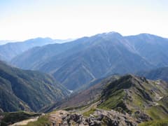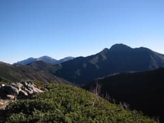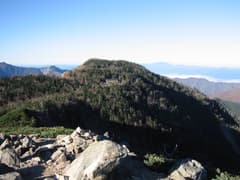 展望についてはすごい!の一言。中アは真横から丸見え。北アはもう白い。南アは、仙丈ヶ岳、甲斐駒、北岳、間ノ岳に農鳥岳(この2つは図体がでかい)。蝙蝠尾根がのびやかで歩くと気持良さそう。9月に歩いた赤石と聖はちょっと隠れるが、荒川三山、大沢岳、中盛丸山、兎岳は見えている。富士山の左、遠くには金峰〜大菩薩連嶺がずらっと。