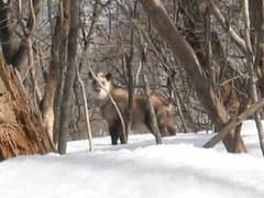 風が強く寒かったがビールを飲んで、パンを食べて往路を戻る。吹返峰への途中でピーとかヒーという聞いたことがない鳴き声がするので、びっくりする。カモシカだった。しばらく、こちらを見ていたあと、急な崖のある方に走り去った。