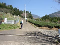 中津川に架る大寺橋を渡る。橋の上から上流には、檜岳(ひのきだっか)の稜線が見える。要所要所の道標に導かれて大寺の集落を抜け、茶畑を急登する。背後には寄の集落がのどかに広がっている。