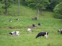 三枚石から往路をロッジへ引き返して、今日の山歩きは終了。ロッジの風呂に入る(400円)。温泉を荷揚げして沸かしているとのこと。浴室の広い窓からは牧場と方塞山の眺めがなかなか良い。汗をすぐ流せて、さっぱりしましたー。