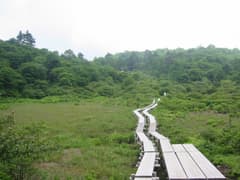 湿原のまわりを一周する。湿原から流れ出す沢にかかる五段の滝はこれが滝?というものだが、水量は多くて涼しげ。湿原から湿原荘のある高台に上がるが、湿原荘は取り壊されたらしく、真新しい東屋が建っていた。東屋の前はベンチのある小さな広場になっていて、湿原を見下ろす居心地の良いところだ。湿原荘があるうちに、一度泊りたかったなぁ。今日は歩く距離が短いので早めに(酔いさましの時間を確保するために)ここでビール&ラーメンの昼食とする。