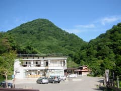 桐生を車で5時発。東北道を白河ICで降り、R289で阿武隈川上流の甲子温泉を目指す。途中の新甲子温泉付近は緑豊かな高原リゾート地で、ドライブ目的に来ても気持ち良さそうな所。新甲子温泉を過ぎると渓谷は深く険しくなり、行く手には旭岳が▲な山容を見せて高い。