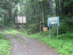 数回、沢を渡りながら下り、車道に出ると敷地バス停までは僅かの道のりだ。バスの時刻まで1時間ちょっとあるので、自販機のジュースで喉を潤しながら、のんびりと待つ。雨が上がって、涼しい風が吹いているのは幸いだった。
