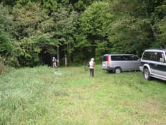 湯野上温泉から大内への道に入る。観光客で賑わう大内の宿場を過ぎると立派な石碑の道標があり、これに従って未舗装の林道にはいる。2,3回カーブを曲がると行き止まりで、ちょっと広い駐車スペースと「小野嶽大内登山口」の道標がある。ここに車を置いて出発。