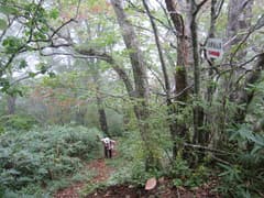 このあたり、ササグリが沢山落ちていて、拾い集めながら歩く。ブナ、シイ、コナラ、トチなどの美しい樹林の尾根の登りとなる。紅葉にはまだ早いが、時期が良ければかなり綺麗なのではないかと思う。
