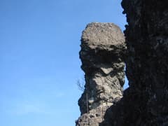 丁須の頭へは岩峰の基部を巻いていく。途中のトラバースの鎖場はスタンスが貧弱で、今回のコース中、一番いやな個所だ。ようやく辿り着いた丁須の頭は展望抜群だが、足下は断崖絶壁でどうも気分が落ち着かない。てっぺんのT字の岩からは鎖が垂れ下がっているが、死亡事故も多発しているとのことだし、今日は鎖場での調子がいまいちなのでパスする。