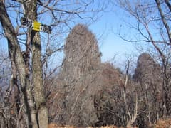 三方境へは谷急山を木の間越しに眺めながらの短い下り。三方境は割と広い鞍部だ。ここからの道は風穴尾根の山腹を絡む緩い下りで危険個所は全く無し。まったり下る。