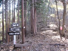 沢沿いの道は木戸を過ぎると少し傾斜が緩くなるが、再び急になって最後は鎖場で稜線に詰め上がる。ここは丁須の頭の岩峰の基部で、御岳からの尾根ルート(こちらも痩せ尾根で面白そうだ)が合流している。