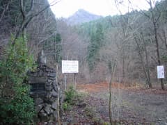 星穴新道入口には、星穴岳登山禁止の看板と、昭和45年2月11日に遭難した藤岡女子高生徒二名の慰霊碑がある。ここは女坂ルートの入口でもあり、道の様子をちょっと覗いてみる。荒れ気味で怪しい雰囲気だが、一応、人が踏んだ跡もあるようだ。