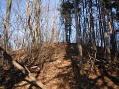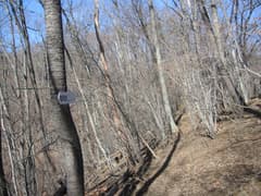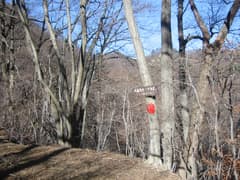 ここからはすっかり葉の落ちた明るい雑木林の中を緩く登る尾根となる。木の間越しに谷急山の鋭い前衛峰を見上げながら、のんびりと気分良く登る。名前の由来は知らないが、女道の名がぴったしの場所だ。