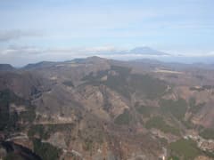 相沢への道を分け、避難小屋の屋根が見えると、そのすぐ先が艫岩の大絶壁。話には聞いていたが、実際にその上に立って下を覗き込むと、くらくらするような高度感だ。北側は全く遮るものがなく、噴煙を上げる浅間山、先週登った谷急山と妙義の山々、遠くには上信越国境の白い稜線の眺めが良い。