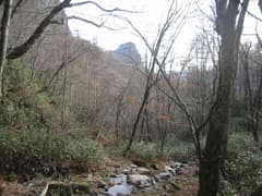 登山口の線ヶ滝は大上の集落を抜けてすぐ。夜明け直後の7時に到着。車道終点の路肩に車を置く。まだ他に車はない。線ヶ滝は帰りに見ることにして、登山開始。すぐに星尾峠への道を分けて立岩への直登ルートに入る。