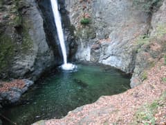 さらに車に戻ってザックを下ろし、デジカメ片手に線ヶ滝を見に行く。落差35mの名のごとく一直線に流れ落ちる滝だ。滝壺まで歩道があり、数分で降りることができる。滝壺の下流もすごいゴルジュになっている。素晴らしい。こんなところがあったとは、これからも西上州なかなか楽しめそうです。
