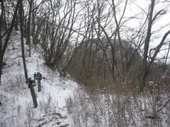 いつものごとく缶ビールを持って来てはいるが、この状況で飲める訳もなく、写真を数枚撮って下山開始。慎重に下る。急な痩せ尾根が続くが、灌木が多いので思ったよりは楽だ。巻き道に合流し、巻き道を少し戻って道場への尾根を下る。