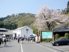 和紙の里では、しゃりばてしないようにあんぱんを頰張る。ベンチがあり、新緑と桜がきれいで休憩にもってこい。せっかく時間を短縮したのに、ついついのんびりしてしまう。