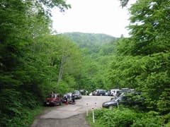 ようやく到着した猿倉登山口には、既にたくさんの駐車があり、バスまで来ている。登山口に近い方の駐車スペースはいっぱいだったので、WCがある手前のスペースに車を置く。こちらでも登山口までの距離は大してない。