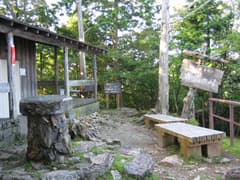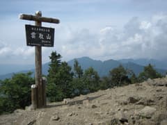 雲取山はこれで3回目。明るく開けた山頂の印象は以前のままだ。まずはうずら卵をつまみに、下から担ぎ上げたのでちとぬるい缶ビールを開ける。展望は飛竜山へ続く稜線が一望。和名倉山の方は夏らしい雲が湧き上がっていて隠れていた。頂上の少し先には避難小屋があり、中を覗いてみたら非常にきれい。WCもあるので、十分宿泊可能だ。