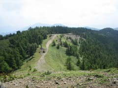 大ダワまで下ると、まず白岩山までが大きな登りだ。これを越えると前白岩山、そして霧藻ヶ峰と登りがあり、なかなかしんどい。ようやく、霧藻ヶ峰に登り着くと休憩所が開いていて、冷たい飲み物を売っていた。ゴールまであとわずかなので、ここはぐっとがまん。
