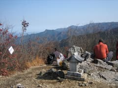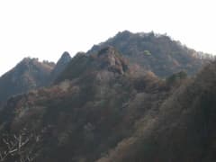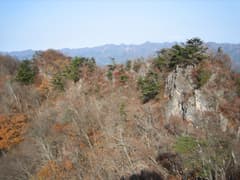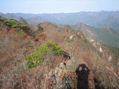 登山道に戻って先に進む。古い道標と新しい道標が沢山あって、道ははっきりしている。シラケ山を下り、岩場を左から巻いて再び稜線に出ると、小ピークが連続する痩せ尾根となる。行く手のピークに天狗岩展望台で会ったご夫婦がいるのが見えた。私がシラケ山に登っている間にどうも追い越されたようだ。写真を撮っているようで、私に気が付いてこちらにカメラを向けているので手を振ったが、逆光になっているので写っただろうか。