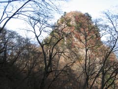 往路に比べるとあっけなくシラケ山と天狗岩の間の鞍部まで戻る。団体のハイカーさんが天狗岩展望台を目指して登って行くところだった。天狗の岩洞を覗いたあと、奥の二股からは往路と同じ遊歩道を下って登山口に戻る。駐車場の車は10数台に増えていた。