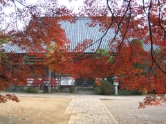 カエデの紅葉がきれいな通りを抜けると、突き当たりが長林寺。境内のカエデや周囲の山の紅葉もなかなか。周辺は公園になっていて、駐車場、WC、ハイキングコースの新しい案内板があり、よく整備されている。ハイキング大会のお知らせ(毛野大坊山観光協会)も掲示されていて、それによると毎年4月と10月の第4日曜日の午前9時に長林寺出発とのこと。