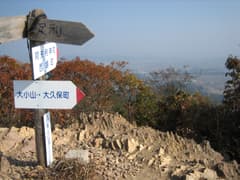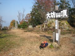 分岐から大坊山を往復する。大坊山山頂にはかつては大山祇(おおやまづみ)神社があったが1965年に落雷で焼失とのこと。今は狛犬や石碑の残る見晴らしの良い広場になっている。