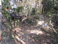山道に入ると、すぐに健脚者コース(左)と初心者コース(右)に分かれる。このハイキングコースはよく整備されていて、少しでも険しそうな所には迂回する初心者コースが用意されている。いちいちどっちを行くか、考えるのも面倒になってきたので(^^;)、以下、この種の分岐はすべて健脚の方を通ることに決定。