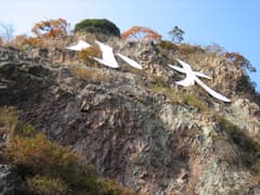 妙義山から隣りの鷹巣山を経て、"大小"の文字板のある岩壁の下にある見晴台に移動し、東屋で昼食にする。半年ぶりにガソリンコンロを使ってお湯を湧かし、餅入りスープを作った。ちなみに"大小"の文字はステンレス製で高さが7.6m、幅が7.2mで、平成7年11月に掲揚されたそうな。