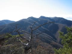 桐生を車で出発。甘楽町秋畑側から鳥居峠まで車で入る。荒船山方面がよく見えたが、遠くの浅間山は雪雲の中。風がとても冷たい。稲含山山頂までは急だがよく整備された道だ。稲含山に登るのはこれで2回目。前回、2002年元日に登ったときは初めての西上州の山だったので、見える山は知らない山ばかりだった。今回は既に登った馴染みの山が増えたのでよく判る。南には西御荷鉾山から赤久縄山、目指す白髪岩にかけての山並みが連なる。白髪岩付近の樹木には霧氷がついて白くなっている。どおりで寒いはずだ。