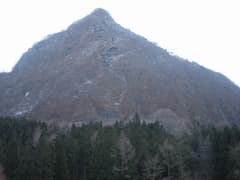 高立に近づくと、御場山の北面の断崖が見渡せる。この時期は雪が付いているので迫力が増す。小沢岳は西上州のマッターホルンと呼ばれているそうだが、それなら御場山はさしずめ西上州のアイガー北壁とでも言えそうだ。