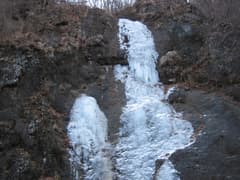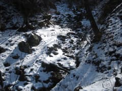ちょっと登ると、左に氷瀑が現れる。ネットの情報によると西ルンゼと言って、アイスクライミングの対象になっているそうだ。沢もあちこちで凍っているが、幸い道は凍ってなく、アイゼンは使わずに済む。土砂の押し出しが多く、荒れた沢だが、道型ははっきりしている。
