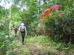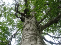 復路は尾根伝いのブナ林の中の西コースを下る。ブナに巻き付いたツタウルシの葉が少し赤くなっていた。