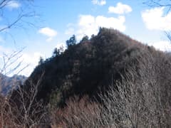 先々週の山行で、天丸山から帳付山を目指して上武国境稜線を歩いたときのこと(山行記録)。途中で眺めた武州側の山々の中に、小粒ながらもキリッとした三角形の山容の南天山が目に留まりました。