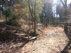 雌岳北峰を越えると、あとは完全に葉の落ちた明るい雑木林の稜線を辿る楽しい道だ。左に下る道の入口に「八風平キャンプ場 安中山の会」の道標を見るが、稜線をもう少し進んだ展望台に行ってみることにする。