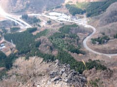 展望台の先にも岩稜が延びているので、食事のあとに少し辿ってみる。ここも左が切れ落ちた岩壁で、眼下の山腹には上信越道が大きく孤を描く。谷急山から裏妙義、遠く榛名山にかけての眺めが良い。