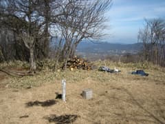 頂上からの展望はカラマツ林と雑木林に囲まれて限られる。軽井沢方面が伐採されていて良く見える他、日暮山、高岩、谷急山、裏妙義方面、あとは経塚山(荒船山)がわずかに見えるだけである。しかし、頂上は芝の生えた広い平地になっており、休憩には良い。ちょうど、ご夫婦のハイカーさんが1組いて、展望を楽しんでいらっしゃるところだった。他のハイカーには会わなかったそうで、人が少ないですね、という話をした。