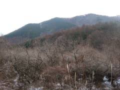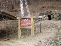 穏やかに晴れた2007年の元旦。朝食に雑煮を頂いた後、宿を出発する。共同浴場の左脇から始まる小倉山遊歩道の途中にある炭焼釜が夫神岳登山口で、新しい道標がある。
