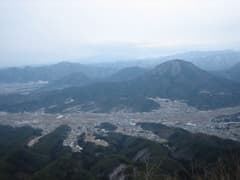 展望を楽しみながらお湯を沸かし、パンとカップスープの昼食をとる。頂上に焚火の跡があるところを見ると、元旦には大勢?の人が初日の出をここで迎えたようだが、今日は、壮年男性一人が地下足袋で登って来た他は誰も訪れない、静かな山頂だ。
