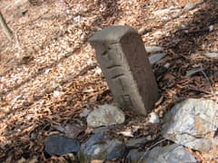 桐生を車で出発して老越路峠を越え、飛駒から黒沢の集落の奥に入る。林道がY字に分岐するところに、「この先車両通り抜けできません 」、「この先、林道行き止まりキケン」、「この先幅員狭小につきUターンできません」という新しい看板があり、ビビらせてくれる。地形図にも記載されている石碑が道端にあり、「右東川道、祝摂政宮御成婚、東川道路改修記念碑、大正十三年二月、左根本山道」と刻まれている。後日調べると、摂政宮というのは昭和天皇のことのようだ。