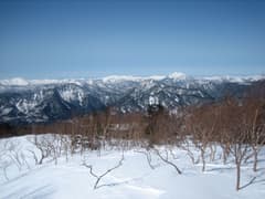 展望は日光連山はもちろん、遠く武尊山、谷川岳、苗場山、巻機山、至仏山、平ヶ岳、燧ヶ岳、会津駒ヶ岳、高原山、那須連峰など、白銀の山々が連なる。風はそよそよと吹く程度で、ほとんど寒さを感じない。2月末にこんな好天に恵まれるとは、運が良かった。