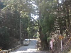 終点の小平で下車する。傍らに「小平の大杉」がある。樹齢千年と言われ、根本周囲約7m、高さ約24mの見上げるような巨木だ。道はここでY字に分岐し、左の茂木(もてぎ)への道に入る。もう正午を過ぎていて、陽射しがポカポカと暖かい。