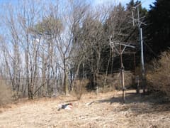 大畑山の頂上は樹林に囲まれた枯れ草の平地で、山名標の付いた共同アンテナが立っている。展望は木の間に赤城山が霞んで見える程度で、日溜まりの中、静かなだけの場所だ。お昼を大分過ぎたので腹が減った。缶ビールを飲んで、鍋焼きうどんを食べる。