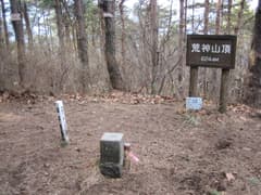最後は雑木林と植林帯の境界の急な登りとなって、荒神山の山頂に到着した。山頂には二等三角点があるが、樹林に囲まれて展望は全くない。休憩なしで通過する。