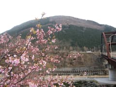 要害神社から石段を南に下る。こちらが正式の参道のようだ。すぐに展望台とWCのある駐車場に出る。展望台に上がると、眼下に大間々の街並がよく見える。駐車場の先には東屋がある。このあたりは桜の木が多く、花見が出来そうだ。