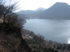 鞍部に登り着き、尾根を右に辿って硯岩の頂上に立ち寄る。展望が素晴らしく、榛名湖を見下ろして、対岸に大きな榛名富士を見る。足元はすっぱり切れ落ちていて、下を見ると結構怖い。岩場のある山歩きから暫く遠ざかっていたせいもあるかも。