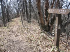 車道を横断して、杏が岳への登山道に入る。杏が岳は杏(あんず)を「すもも」と読ませるので難しい。さらに、登山道入口の道標には「すもんがたけ」とも書かかれていて、こうなるともう難読最強の部類の山名ではなかろうか(^^;)。鷲ノ巣山を越えて、明るい雑木林の尾根を辿る。
