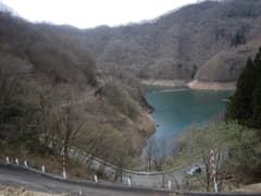 沢を右岸から左岸に渡ると、二条に流れ落ちる優美な滝がかかっている。滑り易い山腹のトラバースを通過すると車道に出て、後は車道をテクテク下って行く。玉原発電所の開閉所という巨大な施設を過ぎ、藤原湖の湖面が見えれば、長沢橋バス停は近い。なお、開閉所から山道を経て長沢橋に至る山道は、完全に廃道になっているようだった。